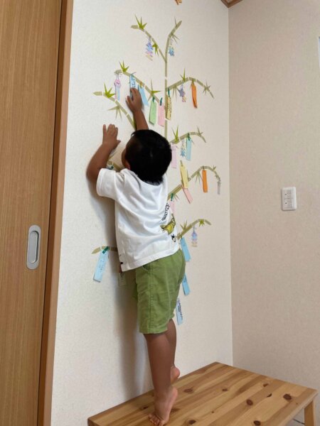 みんな真剣にお願いごとを書いて、めいいっぱい背伸びをして一生懸命上の方に貼りました(^-^)