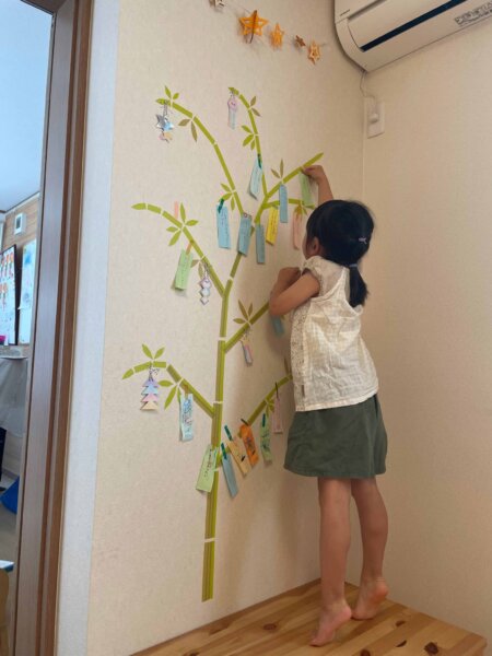 7月7日の七夕に向けて、ピアノ・リトミックの生徒さん全員で短冊飾りを行いました☆