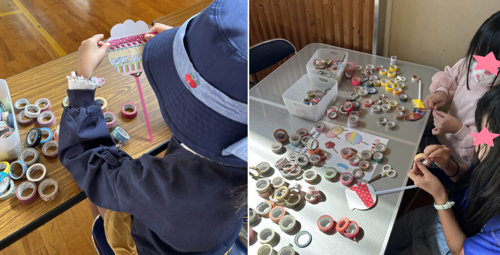 マステアートが初めてのお子様ばかりでしたが、テープの使い方をそれぞれに工夫して貼っているのに感心しました。