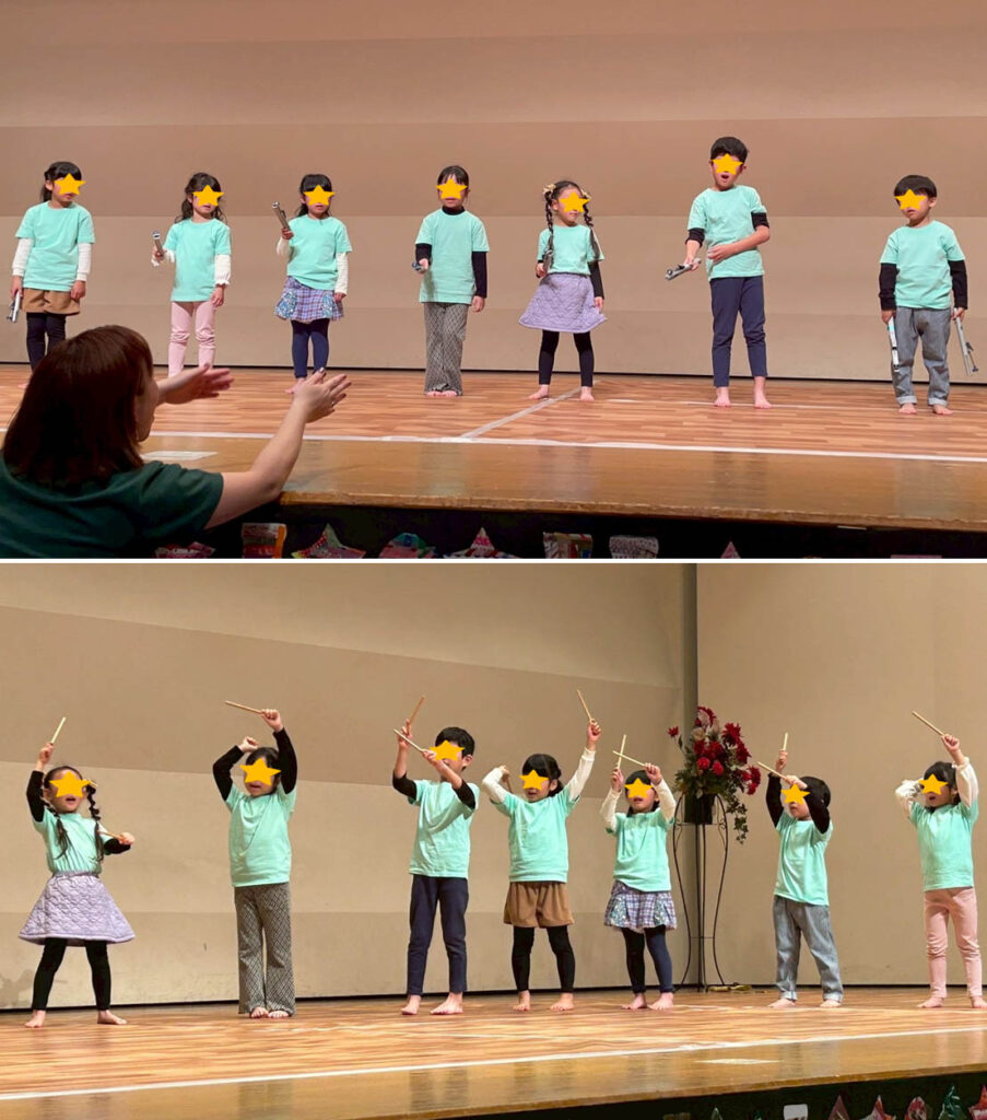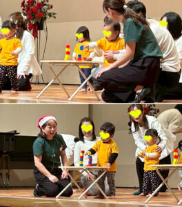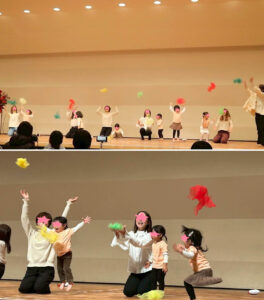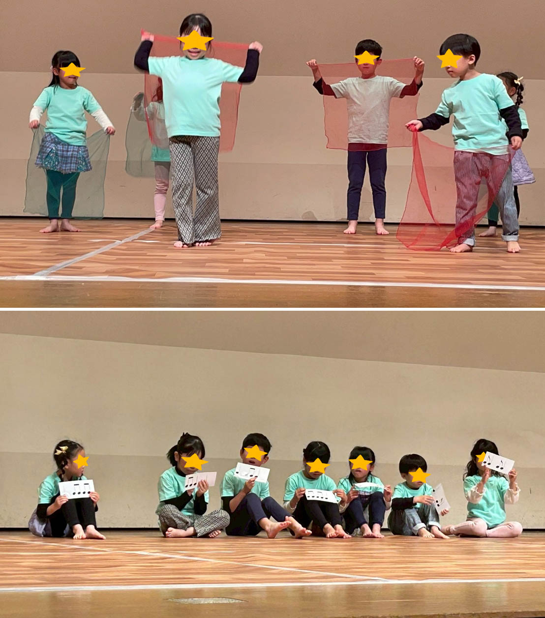 最後のリトミック発表会ということで、ダンス・拍子・表現・トーンチャイム演奏などたくさんの活動を詰め込んだステージとなりました。