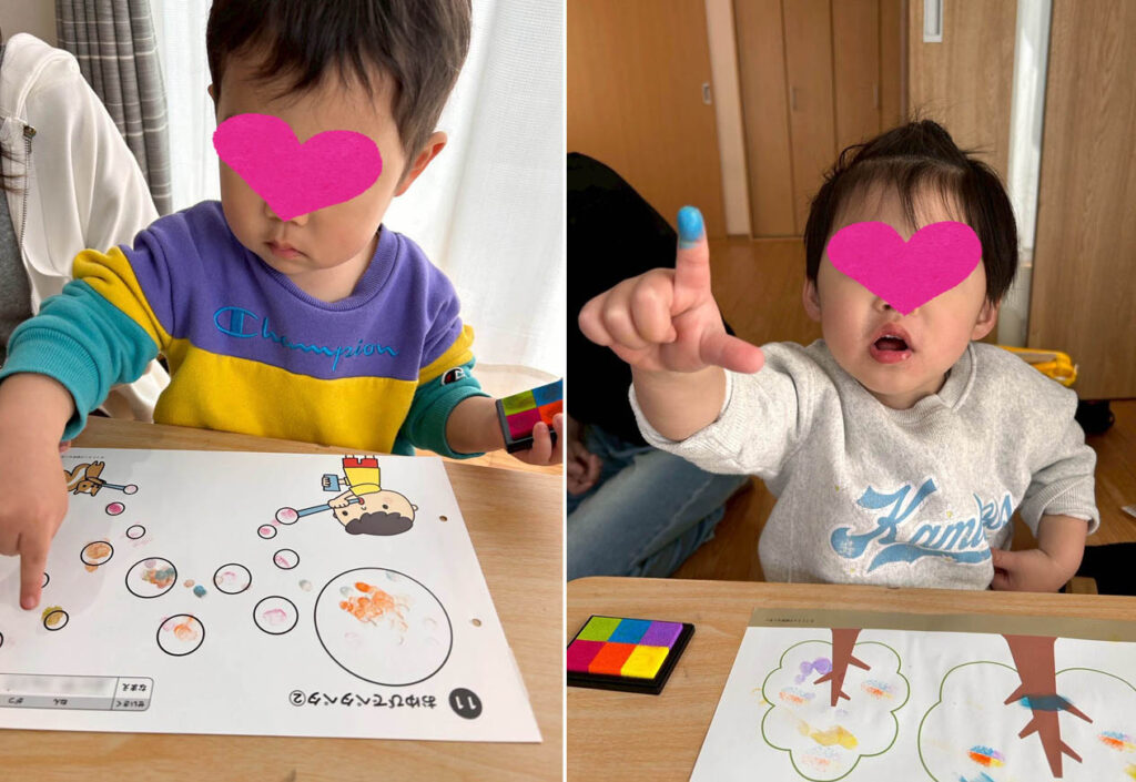 微細運動(手指の細かい動き)が上達し、指1本でスタンプをペタペタすることができるようになりました。