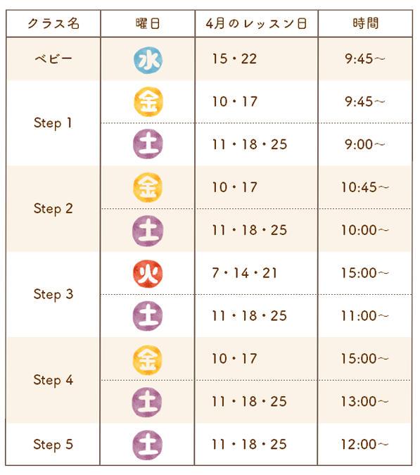 ~4月のレッスン予定~